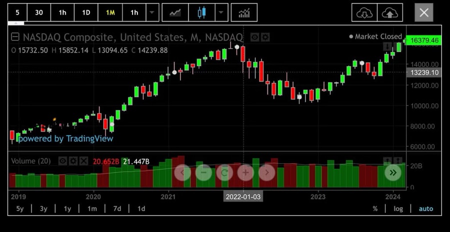 The chart above shows the monthly candles of the NASDAQ Composite—